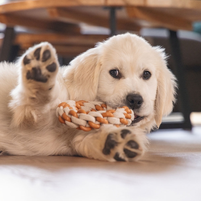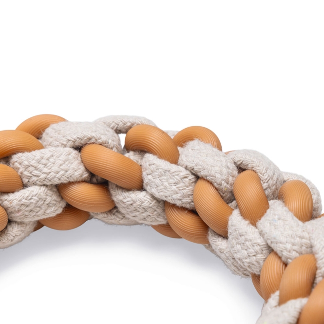 Mit dem Beeztees Puppy Dental Seilring Mik schenken Sie Ihrem Welpen ein Spielzeug, das nicht nur Freude bereitet, sondern auch die Maulhygiene unterstützt. Der Ring besteht aus einer Kombination aus TPR (thermoplastischem Gummi) und Baumwolle, was ihn besonders elastisch macht und beim gemeinsamen Spiel für zusätzlichen Spaß sorgt. Dieses speziell entwickelte Welpenspielzeug reinigt die Zähne und massiert das Zahnfleisch während des Kauens. Die weiche, zugleich robuste Struktur stillt das Kaubedürfnis Ihres Welpen und kann helfen, Zahnwechselbeschwerden zu lindern.