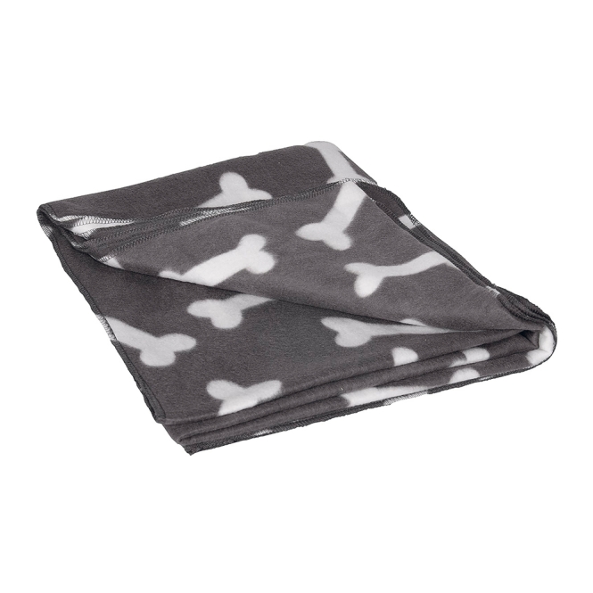 Die Decke mit schickem Knochen-Motiv ist waschbar bis 30°C und hat eine Größe von ca. 100 x 70 cm.