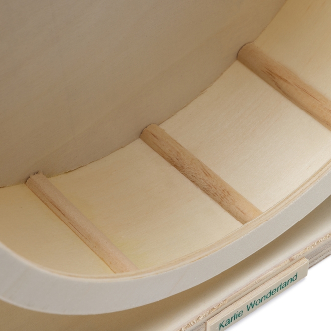 Absolut geräuscharm. Aus unbehandeltem Naturholz. Sicher durch geschlossene Sprossen-Gangway. Zum sicheren aufstellen im Käfig oder Freigehege. Das professionelle Fitness-Gerät um den natürlichen Lauftrieb optimal zu unterstützen.