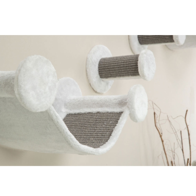 Dieses Wand-Set kann mit anderen Wandelementen kombiniert werden und erweitert den Lebensraum deiner Katze um höher gelegene Bereiche. Die abwechslungsreiche Landschaft erfüllt ihr Bedürfnis nach Aktivität und Bewegung und verwandelt deine Wand in einen Abenteuerparcours zum Erkunden.