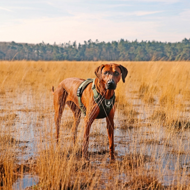 Mit dem EXPLOR Ultimate Fit No-Pull-Geschirr, einem gut durchdachten, ergonomischen Hundegeschirr, das ideal für einen täglichen Stadtspaziergang oder auch ein großes Outdoor-Abenteuer ist, sind Sie unterwegs immer auf Tuchfühlung. Ihr Hund genießt optimale Bewegungsfreiheit, weil der durch Ziehen an der Leine verursachte Druck gleichmäßig über die Brust verteilt wird. So werden lebenswichtige Organe im Nacken geschützt. Das Geschirr verfügt über zwei Befestigungsringe aus Edelstahl: einem auf dem Rücken, der für ruhige oder ältere Hunde geeignet ist, die leicht zu kontrollieren sind und einem verstärkten D-Ring im Brustbereich, um Hunde, die an der Leine ziehen, zu kontrollieren. Das EXPLOR Ultimate Fit No-Pull-Geschirr ist um den Nacken und die Brust herum verstellbar, wodurch es, in Kombinatin mit den stapazierfähigen Materialien, für fast alle Hunde geeignet ist. Die Schnallen sind um die Mitte herum angebracht, so dass der Hund kein(e) Bein(e) anheben muss, wenn das Geschirr angelegt wird. Um das Fell und die Haut des Hundes vor Wundscheuern zu schützen, sind die meisten der Riemen und Schnallen mit weichen, atmungsaktiven Materialien überzogen. Außerdem trocknen die leichten, aber hochwertigen Stoffe, die sowohl für die Innenseite als auch für die Außenseite verwendet werden, schnell, was sehr praktisch ist, wenn Ihr Hund gerne schwimmen geht. Um zu verhindern, dass sich Ihr Hund beim freien Laufen an Ästen verfängt, hat das Geschirr keine Schlaufen oder abstehenden Teile. Das EXPLOR Ultimate Fit berücksichtigt auch die Sicherheit Ihres Hundes im Straßenverkehr. Die reflektierenden Paspeln sind an den richtigen Stellen angebracht und sorgen für optimale Sichtbarkeit im Straßenverkehr. Außerdem gibt es im Brustbereich des Geschirrs eine spezielle Innentasche für einen ID-Anhänger, so dass der Anhänger leicht zugänglich und unbeschädigt bleibt. Rausgehen und ERKUNDEN!