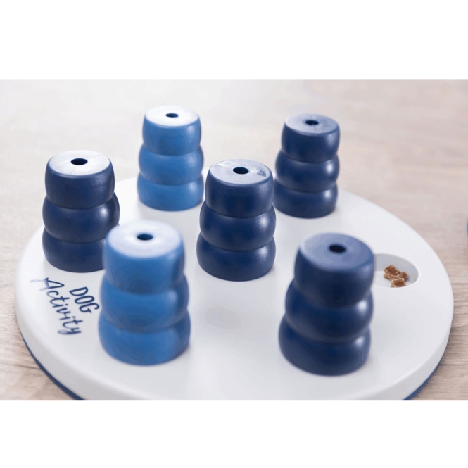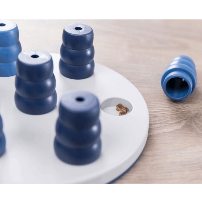 Dein Vierbeiner soll nun mit der Schnauze oder mit den Pfoten versuchen, die Kegel anzuheben, um so an seine Belohnung zu gelangen. Das Spiel ist spülmaschinenfest und sollte regelmäßig gereinigt werden. Aufgrund seines Formats eignet sich das Intelligenzspielzeug besonders für kleinere Hunde. Für alle anderen Fellnasen steht auch eine größere Version des Spiels zur Verfügung.